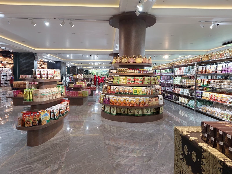 Pilihan lengkap mulai dari kaos, kain tenun, hingga makanan khas.